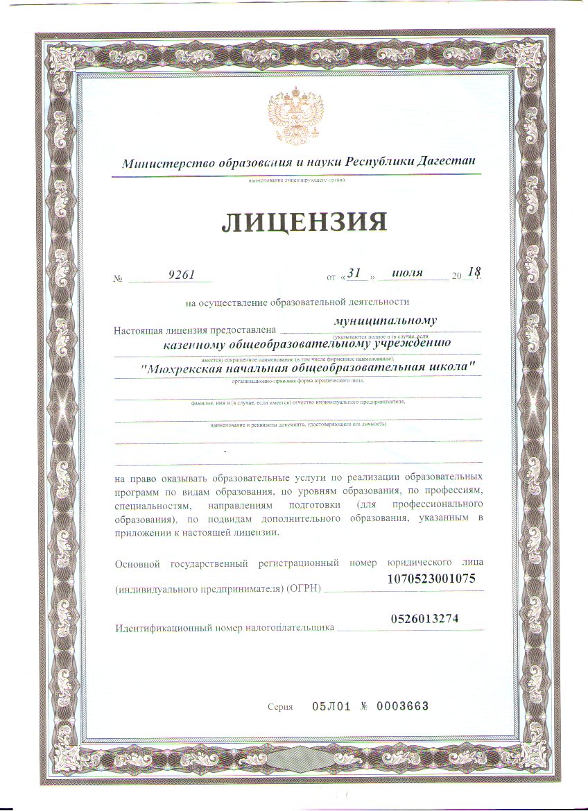 | Полное наименование образовательной организации* | Муниципальное казенное общеобразовательное учреждение «Мюхрекская начальная общеобразовательная школа» |